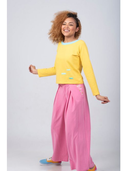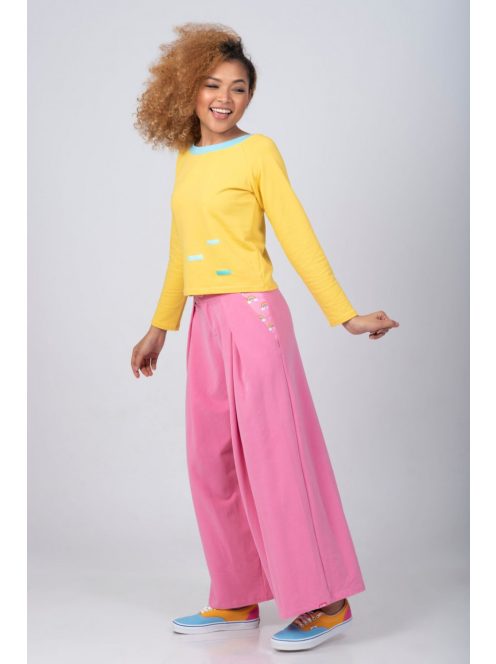Ez a retro stílusú, széles szárú, rövidített nadrág pontosan az a darab, ami hiányzik a ruhatáradból! Mindkét oldalon jó méretű mintás zsebekkel rendelkeznek. A dereka nem gumírozott (elöl cipzárral és gombbal nyílik). Rajtad múlik, hogy csípőn lejjebb, vagy derékban magasabban szeretnéd viselni, mindkettő lehetséges! Csak ellenőrizze a mérettáblázatot a választás előtt.
