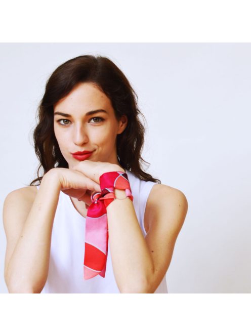 Hordható karkötőként a kiegészítő fémkarikával, de hajba kötve, nyakba tekerve is különleges kiegészítő lehet.
