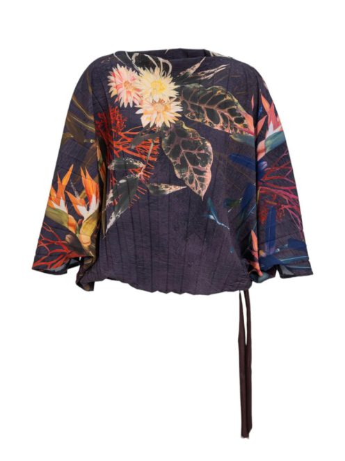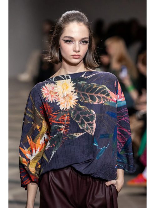 Ez a laza szabású és elegáns csónaknyakú blúz kiterjedt virágmintával és elasztikus derékkal rendelkezik a kényelmes és hízelgő illeszkedés érdekében. Tegye teljessé a megjelenést a csípőn található két megköthető övvel a további hangulat érdekében. A GRACE pliszírozott blúz minden ruhatár kifinomult és stílusos kiegészítője!