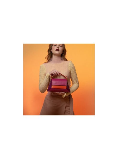 GEM kistáska multicolor. Egyedi bőrtáska, klasszikus női válltáska. Figyelemfelkeltő és időtlen, egy igazi örök darab, amelyet a csiszolt drágakövek geometrikus formái, a márka „V” kezdőbetűje és a Vengru legjellegzetesebb táskája, a paneltáska formája ihletett.