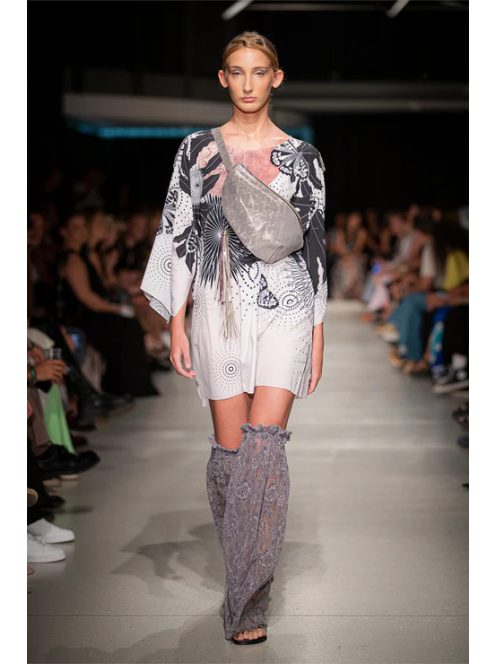 Ez a túlméretezett darab hatalmas ujjakkal, finom csipkefodrokkal büszkélkedhet, eleganciát kölcsönözve a csónaknyak sziluettjének. Ez a rugalmas viszkózkeverékből készült egyméretű ruha kényelmet és stílust biztosít minden alkalomra. Az EPIC Mini Dress minden napra kész ruha, és gyorsan átalakítható estélyi ruhává, ha párosítja a FLIRT csipkenadrággal.