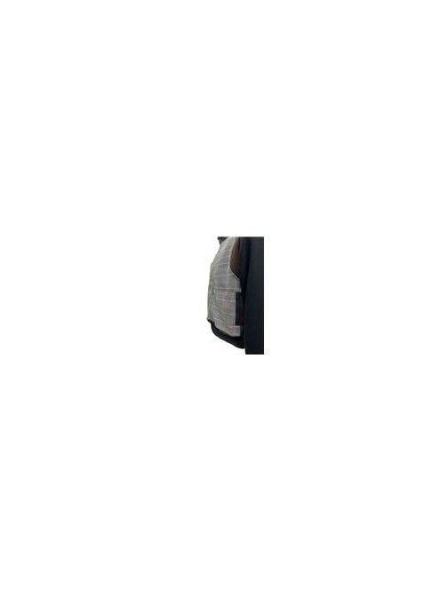 Vászon farmerből, amerikai polárból és kockás anyagból készült tavaszi kabát. A ruha cipzárral és oldalzsebekkel van felszerelve. Az olyan hétköznapi elemek, mint a cipzár részletek és a rugalmas alsó szalag, sportruházati ihletésű ékezetekkel árasztják el a ruhadarabot, míg a lágy színek kiemelik a kabát eleganciáját.
