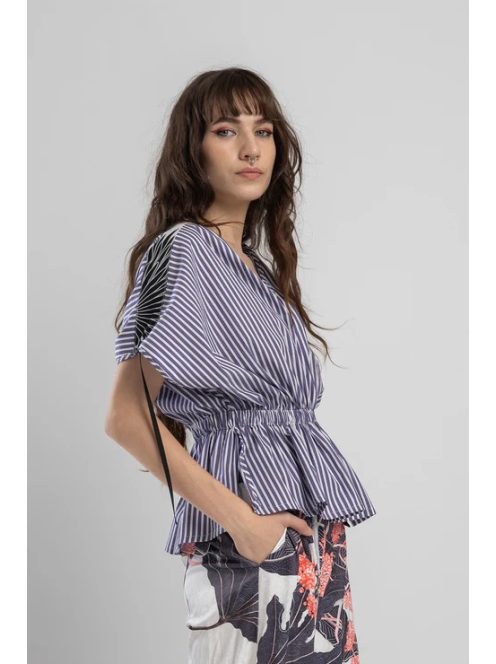 A játékos darab, a COAST Top lila csíkos pamut keverék anyagból készült. Ez a felső egyedi V-kivágással rendelkezik a hátán, valamint a kifinomult érintés érdekében. Rövid ujjú és húzózsinóros dereka sokoldalúságot kínál.