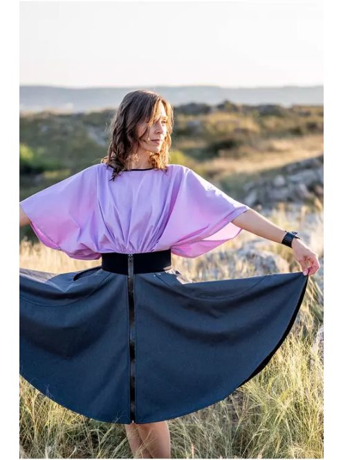 Laza, kényelmes denevér ujjú vászon felső, alja gumis. Bármivel kombinálható.