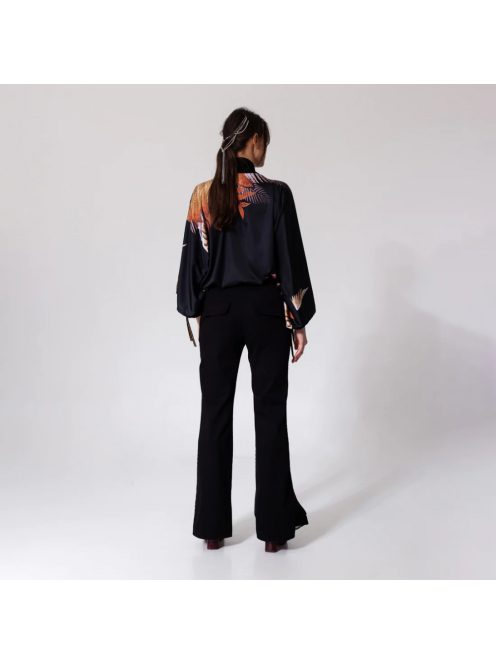 Nagyon elegáns, bő blúz aszimmetrikus gallérral. Poliészter selyemből készült, viszkóz gallérral. Sarah Arnett élénk nyomtatási dizájnját tartalmazza.