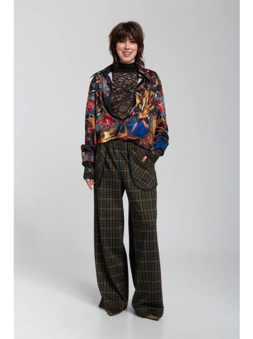 A FRIENDS nadrág egy sokoldalú, széles szárú nadrág, sportos csavarral. Ezt a darabot egy pazar kockás szövet alkotja, amely viszkóz, poliészter és elasztán keverékéből áll. Viseld lapos cipővel vagy tornacipővel az egyszerű megjelenés érdekében. Kombináld a BLOOM ingünkkel vagy az GIFT bombázónkkal egy csinos összeállításhoz.