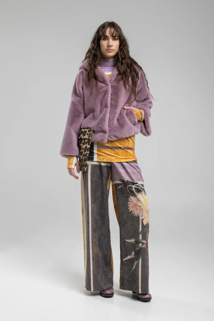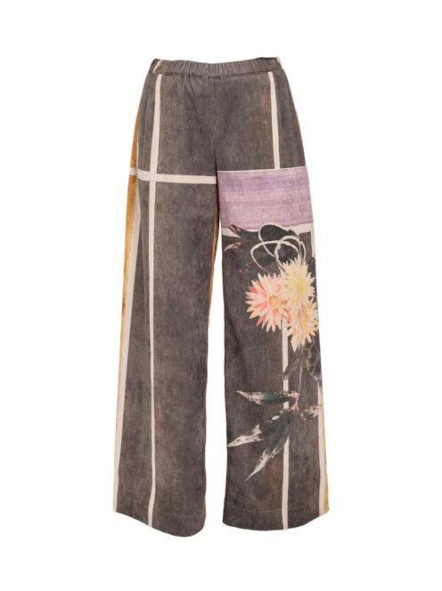 Bővítse ruhatárát a HAILEY Corduroy Pants segítségével! Puha kordbársony anyagból készült, egyedi színes aszimmetrikus nyomattal, gyönyörű virágmotívumokkal az egyik lábán. Ez a széles szárú nadrág elasztikus derékpánttal és kényelmes elülső zsebekkel rendelkezik. Tedd teljessé a megjelenést a HAILEY hosszú garbóval!