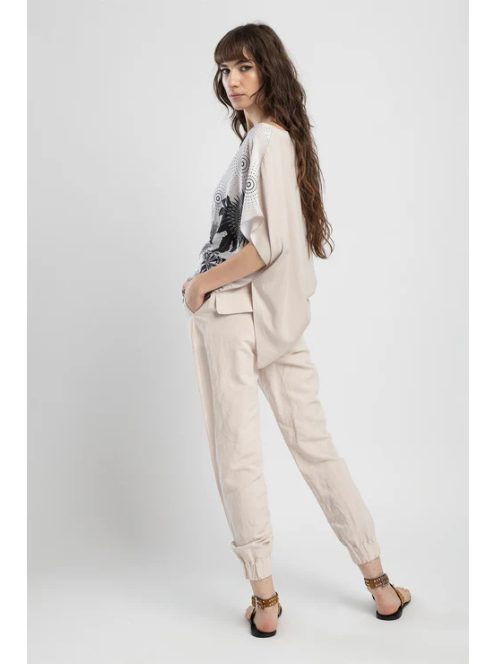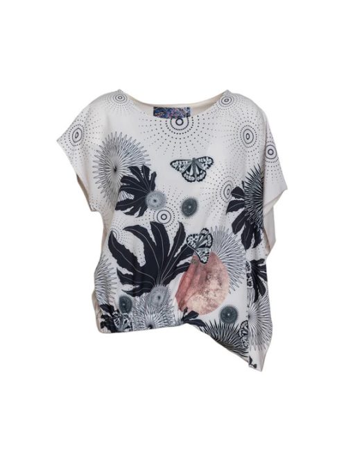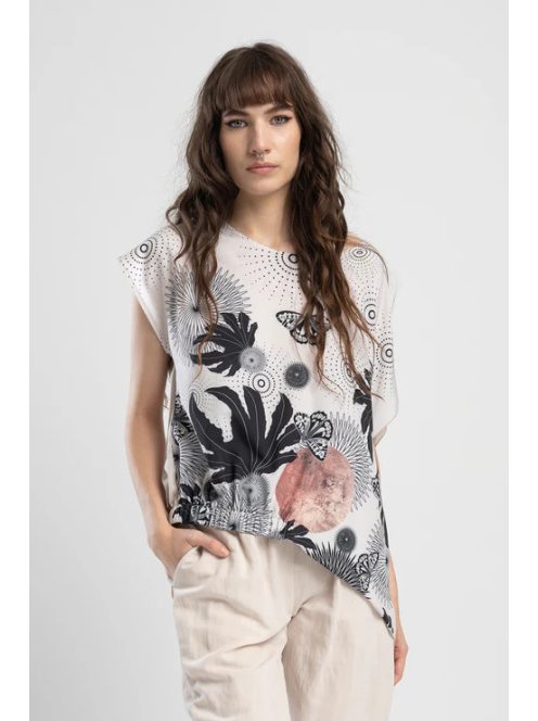 Az EPIC aszimmetrikus vágású felső laza szabású változatban kapható. Ez a felső rugalmas derékkal rendelkezik a tökéletes illeszkedés érdekében. Egyedülálló nyomatkialakításával ez a felső kiemelkedik a tömegből. Egészítse ki a megjelenést a PANKA nadrággal a nyugodt megjelenés érdekében.