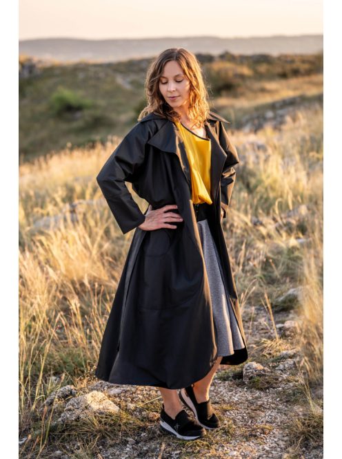 Könnyű, lezser kabát nagy zsebekkel, kötővel. Vagány, praktikus darab. Vékonyabb softshell anyagból készült, mely vízlepergető, légáteresztő.