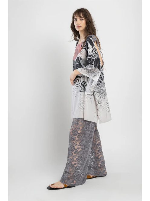 Ízlés kortárs felfogással - a FLIRT csipkenadrág bemutatása. Csipke fedi az íveket, míg alatta egy meztelen rövidnadrág fedést biztosít. A rugalmas derékvonal kényelmes és hízelgő illeszkedést biztosít. Minden ízléses gardrób kötelező darabja. Tedd teljessé a megjelenést a RIZZ aszimmetrikus felsővel, hogy romantikus ruhát kapj.