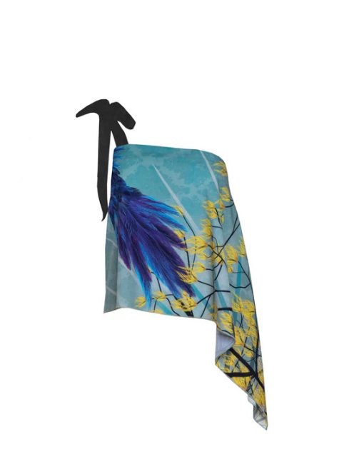 Bemutatjuk a kiváló BIRDIE felsőt. Ez a fényűző darab aszimmetrikus felülettel büszkélkedhet, és élénk nyomatmintát mutat be, amely vonzza a tekintetet. A finom masnival díszített egy vállpánt egy csipetnyi kifinomultságot kölcsönöz a pánt nélküli szabásnak.