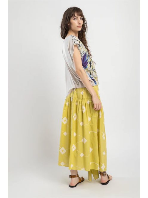 Az AZURE aszimmetrikus vágású felső bő szabású változatban kapható. Csónakos nyakkal és elasztikus derékkal készült, ez az egyedi, nyomott felső aszimmetrikus felülettel büszkélkedhet, finom kialakítású, rövid ujjúval. Sokoldalú stílusának és hűvös élénk színeinek köszönhetően ez a felső bármilyen alkalomra tökéletes. Egészítse ki a megjelenést a PATH Midi szoknyával / hamarosan elérhető!