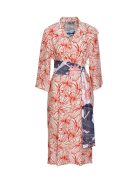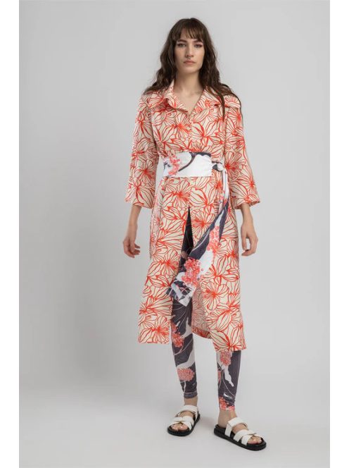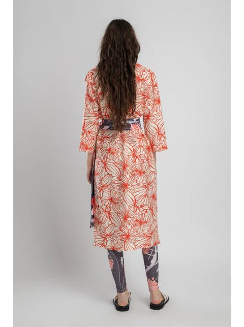 A ROSY piros inges ruha a praktikumot a stílussal ötvözi. Gombos záródású, 3/4-es ujjú és blézergallérral rendelkező, midi hosszúságú ruha magasított, nyomott övvel, amely kiemeli a derekát. Ez a könnyed ruha minden alkalomra tökéletes, eleganciát áraszt.