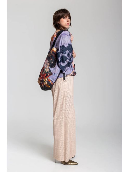 A GEISHA blúz egyedi és színes mintája festőbarátunk, Duliskovich Bazil alkotásaiból készült. Bazil képeinek rétegei és esztétikája az egyik fő inspiráció ennek az őszi-téli kollekciónak.