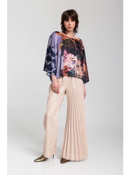 A GEISHA nyomott bő szabású blúzt finoman tervezték selymes poliészter szaténból. Ennek az egyméretű blúznak a bő szabású sziluettjét egy elbűvölő gésa minta díszíti.
