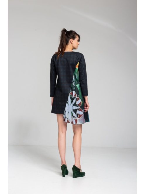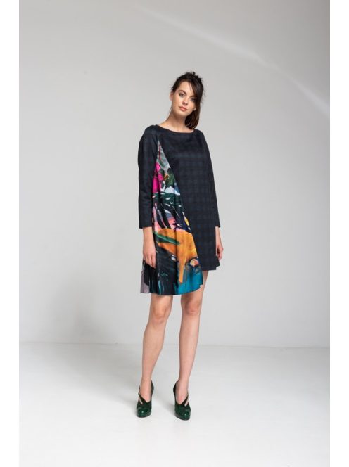 Különleges asszimetrikus szabású mini ruha. Jobb oldalán Ludovic Thiriez festmény print betéttel.