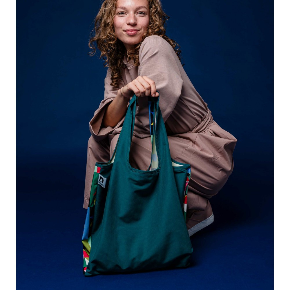 A Notabag Tote egy összehajtogatható bevásárlótáska újrahasznosított műanyag palackokból.