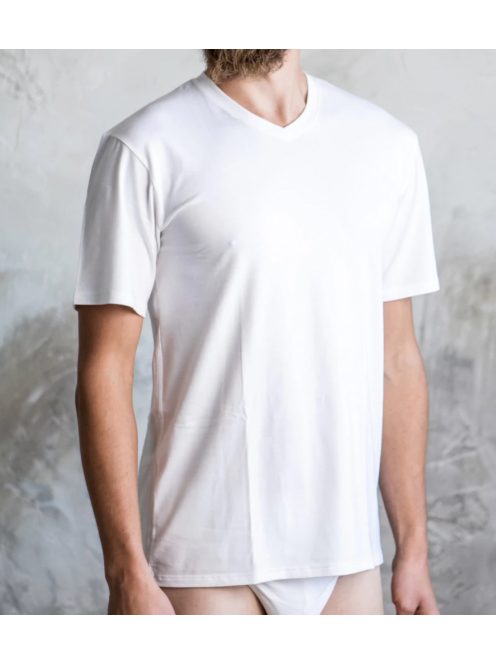 Kellemes viseletű, minőségi V nyakú póló alsóruházatot keresel?A klasszikus szabású férfi V-nyak kivágású aláöltözet minden korosztály számára ajánlott, hiszen nemcsak sportos hanem egyben elegáns is, így akár öltöny alá is kiválóan alkalmas öltözet. Alapanyaga rendkívül puha. Páratlan mikroszerkezetének köszönhetően jól szellőzik és elvezeti az izzadságot. Érzete nyáron hűvös, télen kellemes hőérzetet biztosít.A maximális komfortérzet érdekében, nem használtunk címkét, illetve bőrbarát vízbázisú festékkel készült a termék méret és mosási megjelölése.Ez az aláöltözet kiváló férfi V nyakas rövid ujjú lesz számodra, ha a sportos és elegáns megjelenés, illetve a különleges minőség fontos a számodra! Alapanyag: 46% bambusz 45%, bio pamut, 8% elasztán