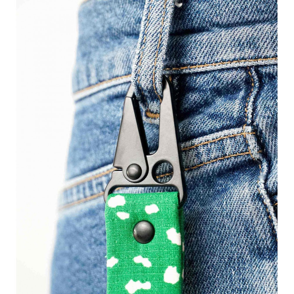 Notabag kulcstartó, a táskák készítése során keletkező szabászati hulladékból. A patent segítségével egyszerűen rögzíthető táskához, babakocsihoz, övhöz Alumínium karabinerrel, vízlepergető, tartós anyagból. Anyaga: 100% ripstop Poliészter Mérete: 20,3 cm x 2,7 cm