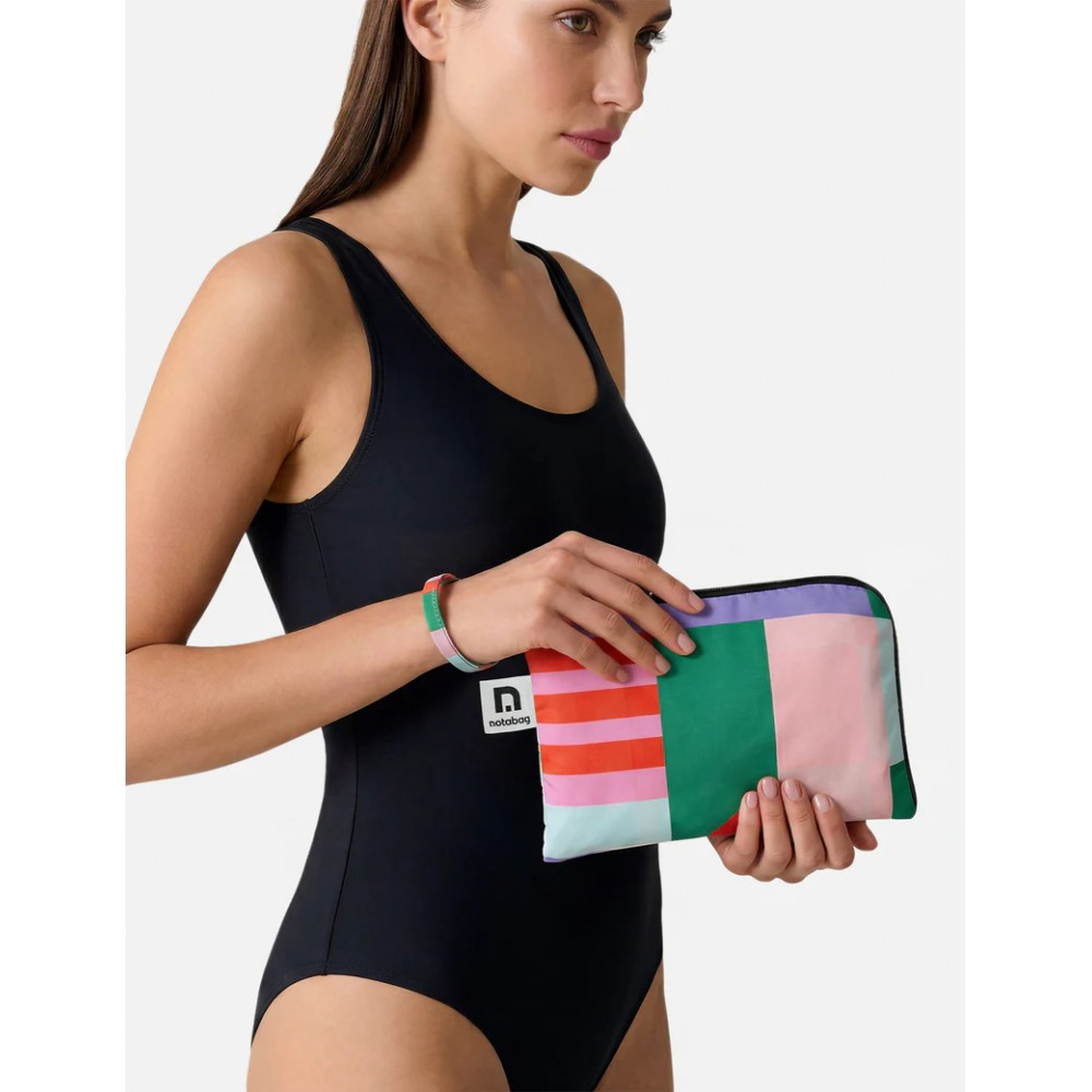 A Notabag törölköző könnyű, és praktikus társad a strandon, az edzőteremben vagy akár a hétvégi kiruccanásokon. Háromszor gyorsabban szárad, mint a hagyományos törölközők, miközben puha és kényelmes marad. A törölközőhöz egy hozzá illő cipzáros tok is tartozik, amely ideális a törölköző csomagolásához vagy kisebb holmik tárolásához útközben. • Anyag: 100% újrahasznosított Poliészter • Mérete: 78 cm x 160 cm • mosógépben mosható • homok taszító