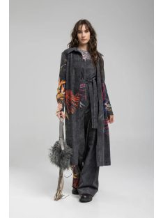 ARTISTA Beauty Washed Black Corduroy Floral Printed Shirt Dress